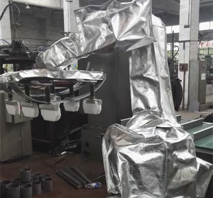 2.抗撕裂:由于搬運機器人需要大幅度旋轉(zhuǎn),其防護(hù)服在設(shè)計制作上采用多段式,滿足機器人不同旋轉(zhuǎn)角度的拉伸,再加上,特殊進(jìn)口復(fù)合材質(zhì),使防護(hù)服不會出現(xiàn)斷裂等情況。